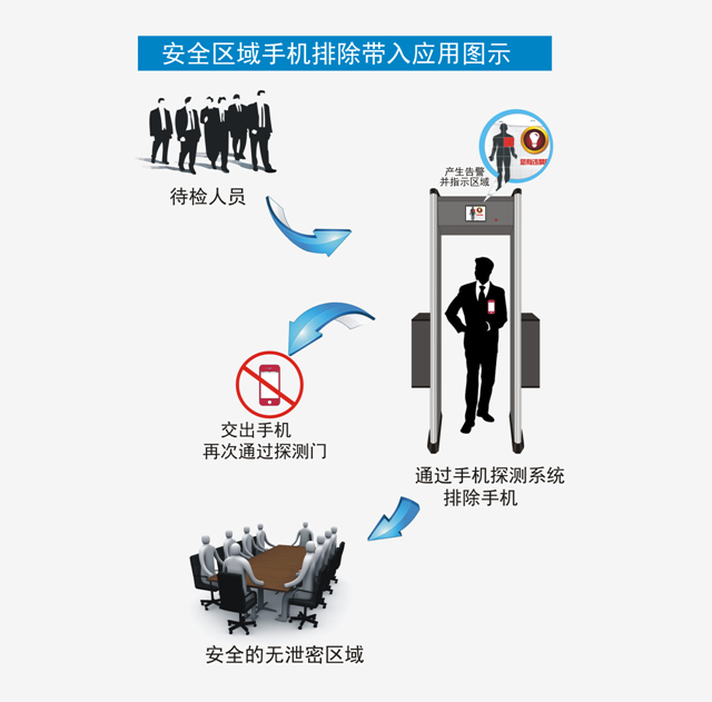 本產(chǎn)品可架設(shè)在禁止使用手機(jī)等電子物品的安全區(qū)域或會場外的入口通道處,架設(shè)簡單無需過多調(diào)試。可通過普通網(wǎng)線連接遠(yuǎn)程pc端或系統(tǒng)標(biāo)配的一體機(jī)實現(xiàn)遠(yuǎn)程監(jiān)督安檢,當(dāng)被檢測人員通過本套系統(tǒng)時如吳帶手機(jī)時,本系統(tǒng)會自動提示手機(jī)在人體攜帶手機(jī)的大致區(qū)域,并用音頻或語音提示監(jiān)控人員與被檢測人員。被檢測人員按照提示交出手機(jī)后可按安檢流程進(jìn)入安全區(qū)域或會場實現(xiàn)區(qū)域安全無手機(jī)化應(yīng)用需求。